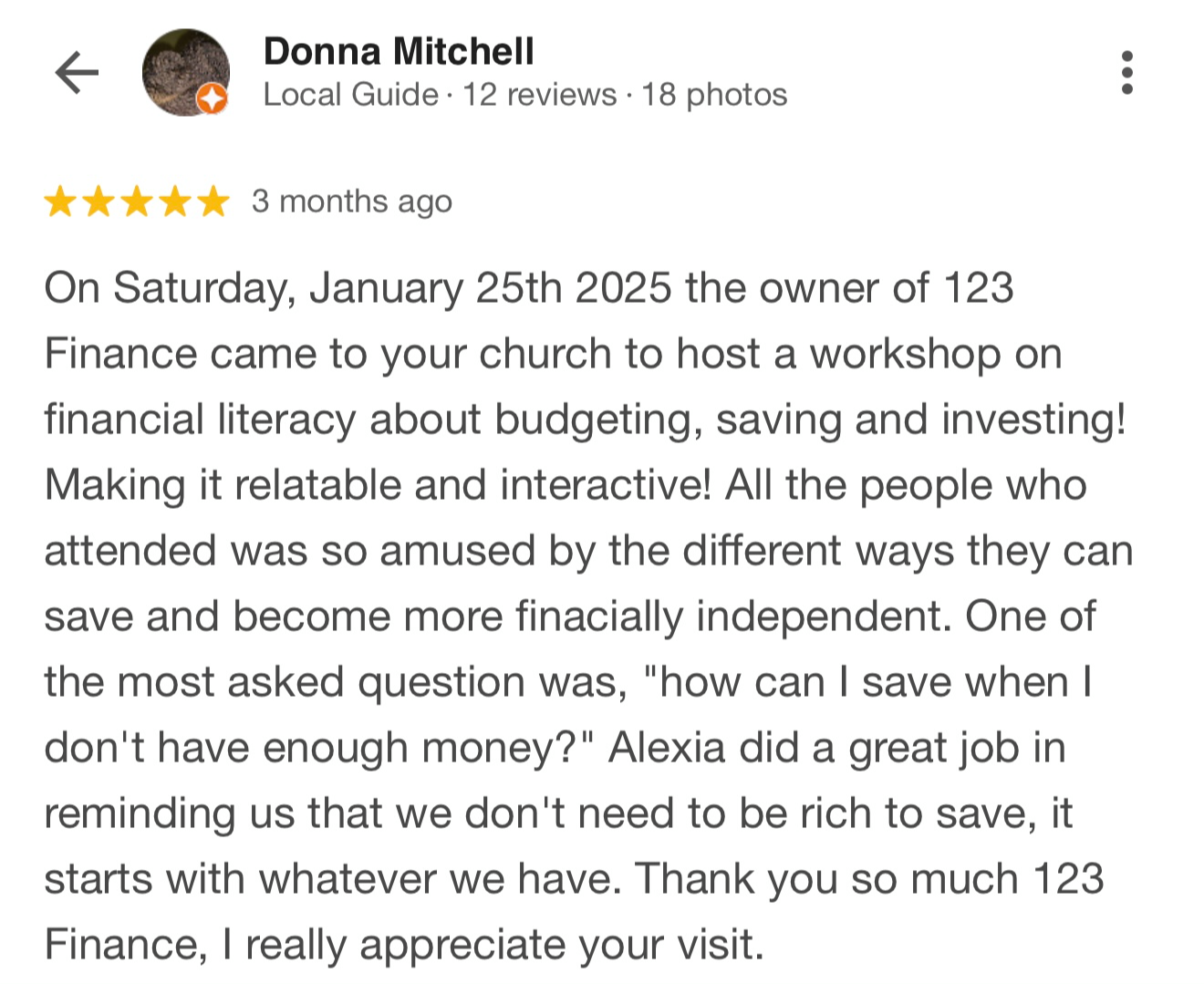 At 123 Finance, we measure success through the stories of those we empower. From students and professionals to community leaders and organizations, our participants share how financial literacy has helped them gain confidence, clarity, and control over their money.